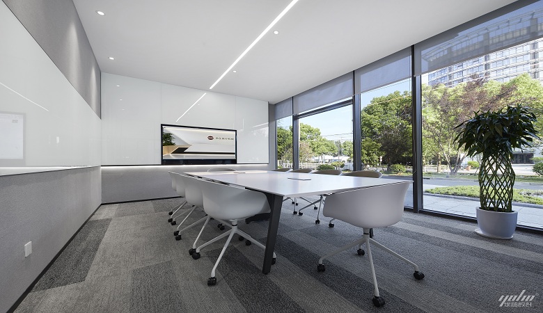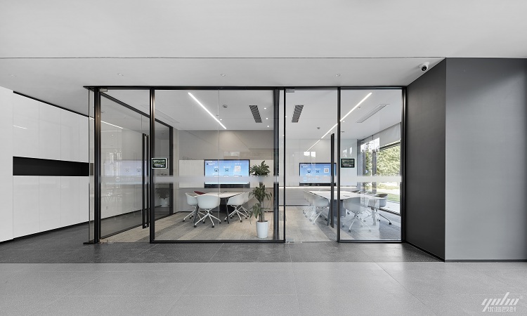 前廳南側擁有大片落地窗,保留豐富的采光與獨特的美景,這裏的會議室、洽談區享有天然的優勢,以自然光線為導向,將空間一分為二。兩個空間彼此獨立又緊密聯係,形成可以自由呼吸的空間氛圍。