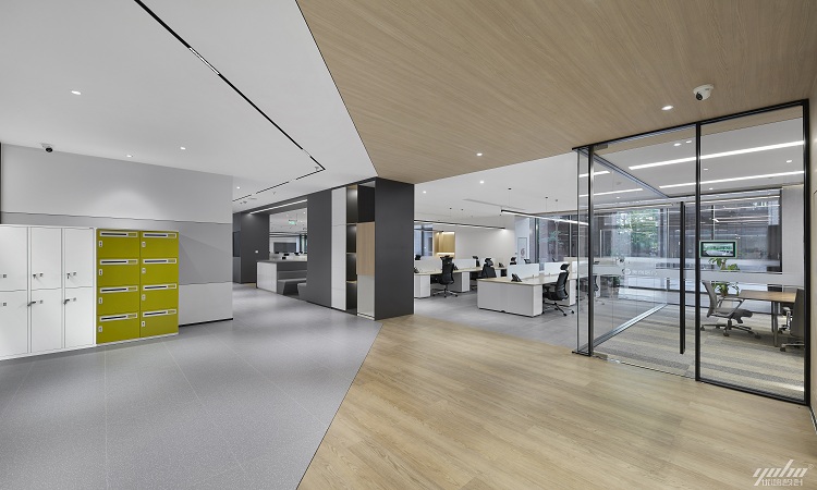 以功能為主導思維對空間進行分區,運用簡練的點線麵構成方式打破空間分區的孤立性,點到即止,麵麵呼應,直線、斜線與點和麵之間的穿插構成,讓整個辦公空間更有力量,極少色塊的點綴讓空間更有溫度和情懷。